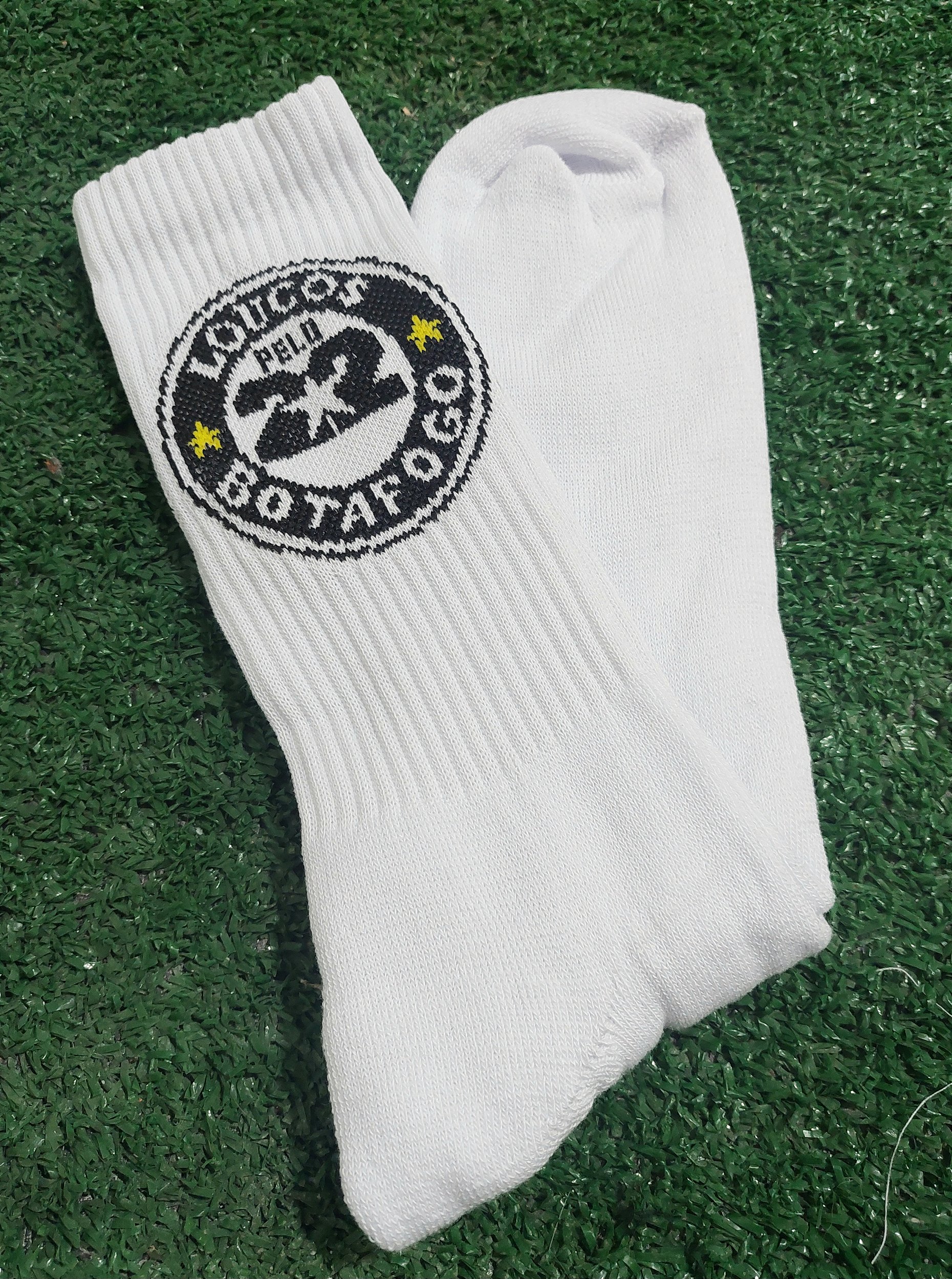 Meia 100% algodão na cor branca com a logo Loucos Pelo Botafogo.